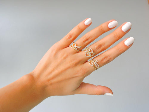 14K Gold Diamond Initial Ring, Letter Ring A–Z, Personalized Diamond Ring, Custom Made Fine Jewelry Gift