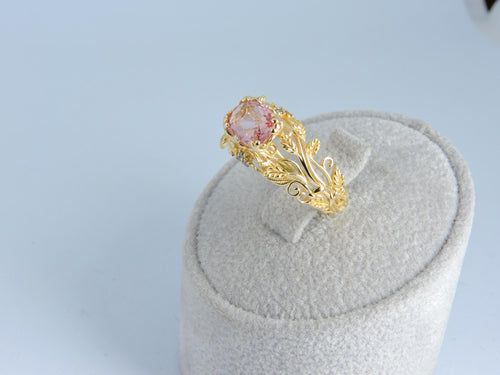 0.95 Ct Pink Spinel Filigree Gold Ring – Handmade Vintage Style Statement Ring – Solid Gold Fine Jewelry