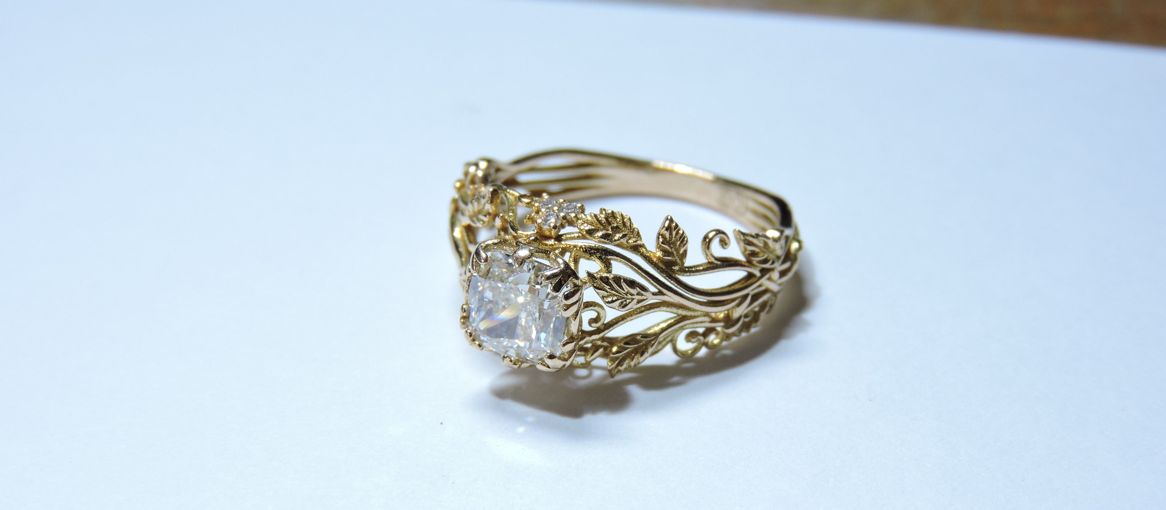 14k Gold Diamond Bezel Cluster Ring: Handmade Bridal Band