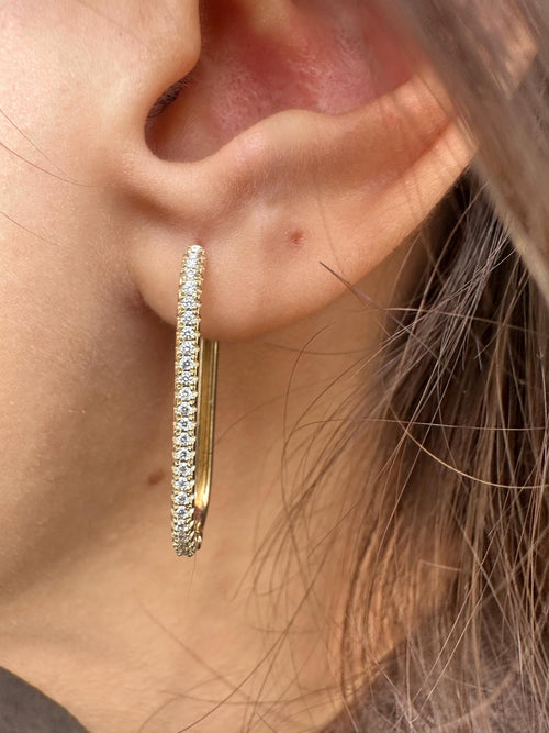 14k Gold Diamond Hoop Earrings: Delicate Oval Design